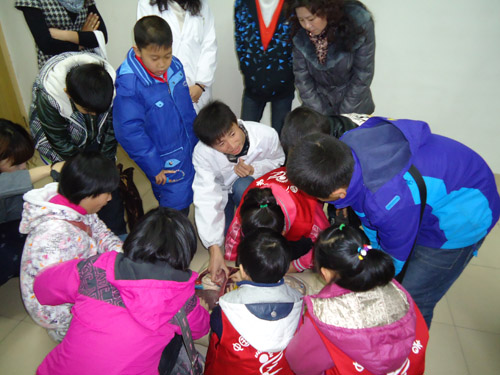 在动物标本室中,小员工们被各种动物标本吸引,围在解说员周围仔细聆听。对于人的各个时期胚胎、中华鲟、鳖等标本的特征和部分动物的生活习性等问题,解说员给小员工们做了详细的介绍。“中华鲟不是国家二级保护动物吗,你们怎么用来做标本啊?”“世界上最大的鸟是什么鸟?”小员工们的各类提问层出不穷。解说员的回答也轻车熟驾。活动在一问一答的互动中达到高潮,充分展现了小员工们丰富的课外知识和强烈的求知欲。