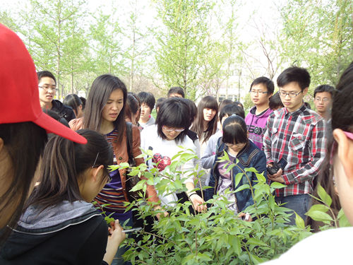 从陌边如毯的兰花到挺拔苍劲的国槐,一草一木极尽生命之美。时至四月,海棠园、樱花园暗香浮动,落蕊纷飞,置身其间宛如仙境,确实让同学们领略了自然之美,生命之妙,这也激发了同学们的求知欲望和学习兴趣,移步间同学们和老师一问一答,同学们问的广,老师答得细,闻者获益匪浅,整个团队一路欢声笑语。组织者也是组织有序、分工明确,并细心的为每个介绍过的植物配以名牌,方便其他同学认知。活动受到参加者的一致好评。