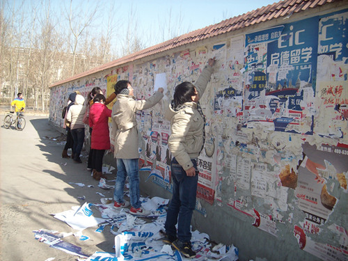 活动中,尽管天气很冷,但是每位志愿者都干得特别仔细。他们认真地揭下每张新张贴的宣传单页的同时,又用小铲子轻轻地铲掉已贴在墙面上很久的一些,深怕铲掉墙皮。其中一位志愿者说:“以前看到别人在墙上乱贴宣传单页,自己会主动走过去说两句,但是现在看着好多人都肆无忌惮地随意张贴,也慢慢习惯了。看到这次公司组织这次活动,我就毫不犹豫地报名参加了,因为我也想为创建文明校园做贡献!”这应该就是每位志愿者的共同心声。最后,他们将一些较为完整的宣传单页收集起来,打算回收利用。