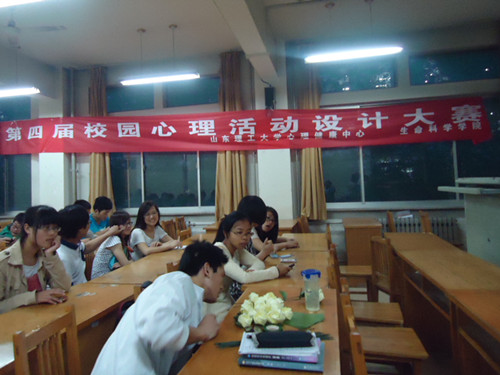 比赛分为培训、初赛、中赛、决赛四个环节。本次培训邀请生命科学公司辅导员张倩老师针对如何设计团队心理活动方案及注意事项、参赛要求等作详细的讲解。培训以谈论“丢手绢”、“情有千千结”等心理测试游戏引出本次比赛的主题——自尊自爱 自强。张老师先对本届参赛选手提交的设计方案提出意见,她表示“自尊 自爱 自强”不是一句口号,而要针对活动设计的问题、活动流程、思路等环节最后反馈到活动的主题上。为作进一步说明,老师还以PPT形式演示了上届参赛选手的作品,以此为例为大家讲解该如何做好本次活动的方案。她指出做策划要明确几个过程:准备——开始——过程——分享,“做活动不仅仅是单纯的做活动,也不是自己一个人对做这个活动的感觉,而是大家的共同感受。当以各种形式向别人展示自己这一团队的活动成果时,不仅要能为自己找到心理路程的落脚点,也要感动他人。”
