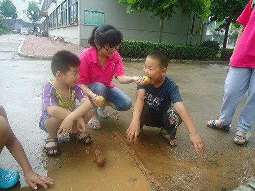 当日,队员们走进孩子们的家,向其家人了解留守儿童被溺爱现象或他们的身心发展状况,并为家长提供了一些事宜孩子健康成长的方法与建议。在孩子们家中,队员们自己拿出通讯工具,让孩子与其父母通过电话进行亲情交流,孩子们稚嫩的话语和期盼的眼神令队员们感到心疼不忍。志愿服务队还组织留守儿童及村内其他孩子进行各种文体活动。老鹰抓小鸡、丢手绢……一系列儿童小游戏让孩子们倍感快乐,他们可爱的笑脸令人欣慰。