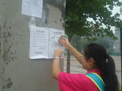 31日,“街头志愿行”活动在张店区人民公园、银座等繁华街区如火如荼地进行着。队员们分为两组分别进行“清除马路小广告”和“杜绝中国式过马路”两个小活动。城市中许多街区马路都存在随意张贴海报或小广告的问题,这些贴在电线杆、路灯柱或墙壁上的小广告严重影响了城市环境的美观性并造成轻度污染,为了能为城市环境建设贡献一份力量,“青春三下乡”服务队走上街头,用自己的双手对违规张贴的海报及广告进行集中细致的清理。一天的劳动成果虽然微乎其微,但队员们的行动仍为城市环境美化工作增色不少。