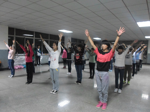 该院文艺部负责健美操训练,每晚,13号教学楼二楼都会响起动感有力的节奏,同学们满怀激情和热情努力训练着,大一新生从刚开始的零基础到现在,已基本掌握了各部分动作要领,在二、三年级同学的带领与指导下,进步亦突飞猛进。几遍健美操跳下来,衣服便被汗水湿透,疲累感阵阵袭来,然而同学们异常积极,休息时不少同学仍一遍又一遍地练习。健美操是力与美的结合,经过几天刻苦的训练,公司健美操团队已渐出成效,与昔日相比取得了很大的进步,虽然存在着不足之处,但同学们都刻苦努力不懈怠,力求将动作做到完美。