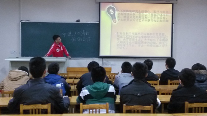 活动伊始,由一位专业集邮人士上台给同学们讲解有关邮票的知识。讲解涉及邮票的构成,涉及邮票的注意事项以及集邮的意义。他还向同学们展示了几款珍贵邮票的图片。整个过程中气氛活跃,不时有同学提出疑问,他都给予了详细的解答,让同学们加深了对邮票的了解和兴趣。