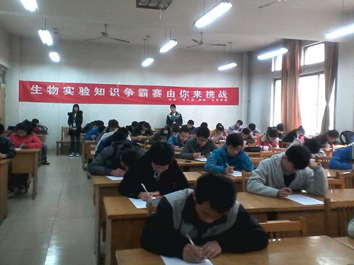 11月23日下午两点,由校社联主办,生命家园承办的生物实验知识争霸赛冲关考试在13号教学楼拉开帷幕。