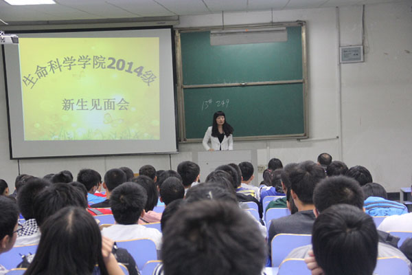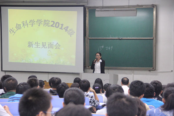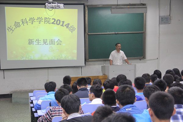 随后党总支书记赵博生为新生门上了一堂生动的院情教育课。他先是感谢同学们能选择生命科学公司。他指出,生命科学公司是一个年轻的充满活力的公司,自成立到现在共经历27年。成立至今,生命科学公司一直蓬勃发展,团队力量不断壮大,科研设备日臻完善,逐渐培养出一批“特别能吃苦,特别能战斗”的教学队伍。近几年公司在加强教学建设的同时,更加注重科研成果的培养。发表在SCI等重点杂志的论文也逐年增多。同时他告诉新生,生命科学公司的课程相较其他公司要多一些,这是缘于生命科学发展速度日新月异。在这样的教学氛围下,赵博生书记为新生提出了几点要求。他首先提出,人没有目标就没有动力,尤其是在大学这样的环境中,确定目标,合理规划对人的成功尤为重要。其次是兴趣是最好的老师,大家若想在生命科学领域做出一番事业,那首先要做的就是培养自己对这一学科的兴趣,要主动的应对问题而不是被动的应付问题。还要坚持自己的选择,要有责任心和危机感,更要注重培养团队意识。赵书记的讲话引经据典,深入浅出,生动的诠释了生命科学的光明前景,并对老员工应具备的素质和美德进行深入讲解,使新生深感受益匪浅。