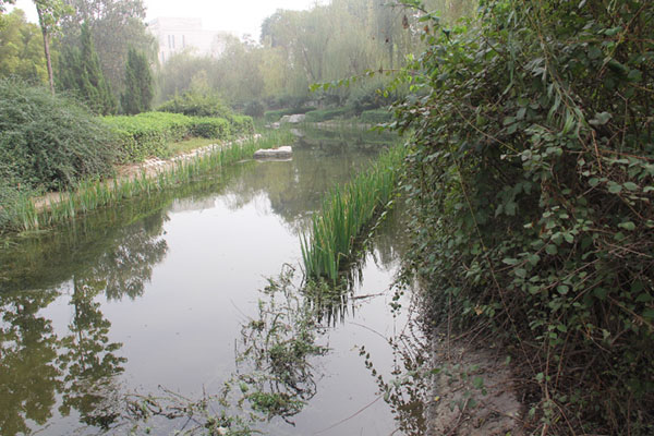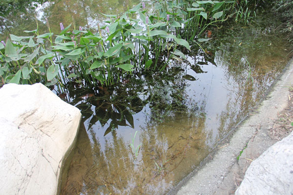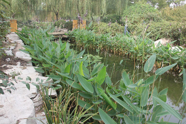 公司作为用水大户,建有自己的中水处理站,对员工公寓、浴室和食堂排放的污水收集处理,有效利用。据能源中心张永宝书记介绍,公司中水处理站日处理污水能力达到1000吨,每年节约大量地下水和自来水,是省级节水节能先进单位。但在使用中水绿化校园以来,也暴露出一些问题,公司地势平坦,水体是局域封闭水体,循环流动性差,水质容易变质污染,自我净化能力低。为解决这一问题,能源管理中心和物业管理中心联合生命科学公司部分科研人员,在环岛西南段水域开展了水生植物净水项目的实验。