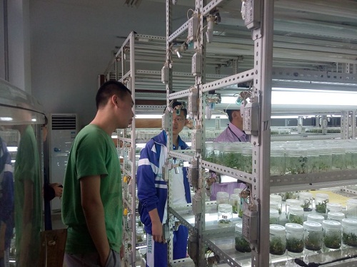 此次活动的地点是公司极具特色的实验室,首先参观的是离心机室实验室,在实验室工作人员引人入胜的讲解中,生物学社成员听得津津有味,对离心机的使用有了进一步了解,在这里社员们可以学到更多课外的知识。接着他们来到了组织培养实验室,各种各样的组培植物吸引了社员的注意力,他们全神贯注的听着实验室负责人对这些组织培养的介绍,眼中充满了对未知事物的好奇,工作人员耐心的回答使他们对植物有了更多的了解,也为他们对生物产生兴趣奠定了良好的基础。最后在基础生物学实验室中,工作人员为社员们详细介绍显微镜的基本仪器的使用。