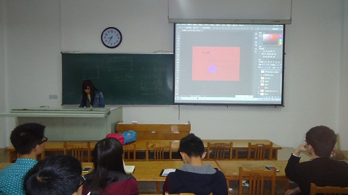之后,又由李熙月向同学们讲解了photoshop的使用方法。介绍了PS的界面以及工具栏,帮助同学们掌握了简单实用的修图技巧。