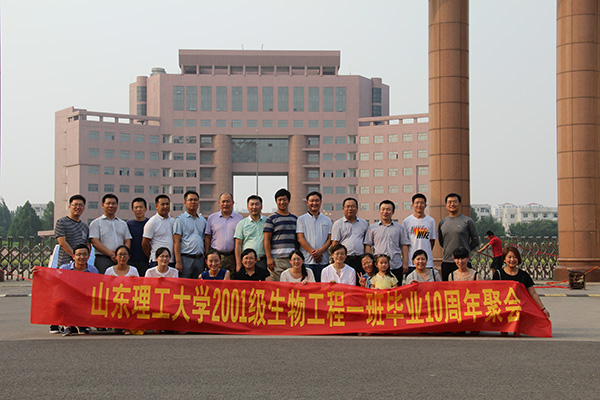 流火八月,稷下湖畔,我们生物工程2001-1班的25名同学与曾经精心培育我们的师友,在分别十年后,于2015年8月8日齐聚在美丽的母校-谈球吧网页版登录入口。追忆往事、畅叙友情、共话经历,共同经历了久别重逢的喜悦。当再次看到这一张张熟悉而又亲切的面容时,同学们仿佛又回到了2005年毕业的那个夏天。那时,满载着老师们的期望,满怀着对生活的向往和对未来的憧憬,离开了教育培养我们的母校,走向风姿多彩的社会。
