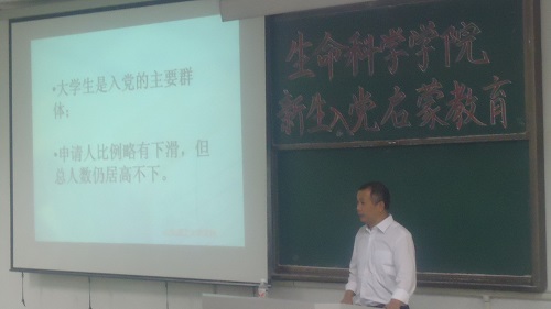 王建兴从当前老员工入党情况结合公司公司的实际引入话题,以党是什么,如何介绍党,如何入党,新生怎样做四个问题为导引分别向新生介绍了党的性质、地位、最高理想,入党申请条件、程序、步骤,党员的基本权利与义务等相关内容。其中他深入讲解了新生入党的事宜,包括新生入党的各种条件和准备,入党必需的程序和各个程序的具体步骤与要求,最后还贴心的向同学们介绍了如何写入党申请书。王建兴强调新生入党动机一定要端正,不应该出现功利、虚荣、从众心理,要切实地考虑清楚自己的入党动机,并且要严格按照党员的标准要求自己。王建兴在会议中结合自身理解生动形象地和同学们分享了他对共产主义的理解,应该像期盼过年一样地期盼共产主义,鼓励同学们为实现共产主义社会不懈努力,作出自己的贡献。同时引用了很多先进党员的事迹引导同学们向优秀的人学习。