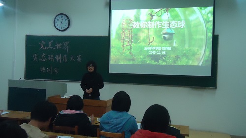 11月8日晚,“完美世界”生态球制作大赛赛前培训于13号教学楼201教室顺利举行。大赛由青青环保社主办,公司安春艳老师对来自各公司的33支参赛队伍进行了培训。