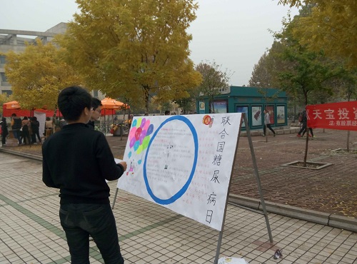 据有关宣传人员介绍,今年“联合国糖尿病日”的主题是“糖尿病教育与预防”。通过宣传,可以让更多的同学知道“联合国糖尿病日”的存在,扩大同学们的知识视野;其次在宣传过程中,针对所涉及糖尿病的预防、糖尿病的症状以及糖尿病患者饮食等方面应注意的事项等问题,更深入的做好校园糖尿病知识的普及活动,可以让更多的同学了解并认识糖尿病,提高自身防范意识。