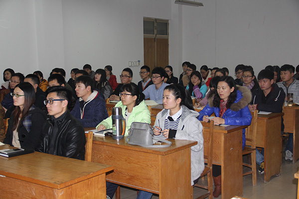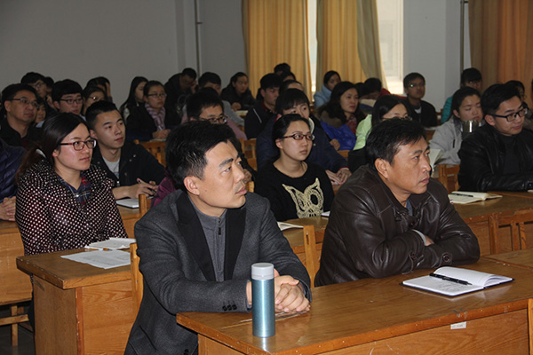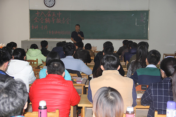 12月10日下午,党总支在13号教学楼215教室举行“学习十八届五中全会精神”辅导报告会,特邀中共淄博市委讲师团副团长于涛老师为公司师生讲解十八届五中全会精神。党总支书记赵博生、副书记王建兴及全体教师、员工党员60余人聆听了报告会。