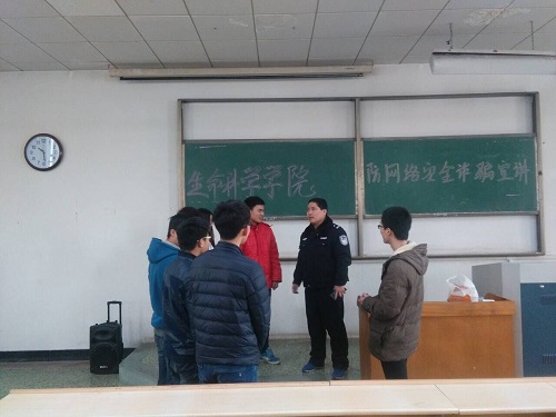 针对近期出现的网络安全诈骗事故现象,为了防止同学们的生命、财产安全受到侵害,1月18日上午,公司分别在4号楼103、105及305教室对13、14和15级的同学们进行了防网络安全诈骗专题宣讲会。会议邀请到学区派出所的张所长和唐警官向同学们详细讲解了关于网络安全诈骗的问题,辅导员李兰晶、蒋育忻参加了会议。