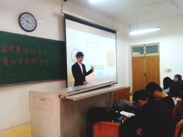 为加强同学们的爱国爱党观念,生命科学公司生技1401团支部特地举行了“爱党爱国铭于心,爱校荣校践于行”系列主题活动。团支部以人为本,以引导广大团员青年增强知校、爱校、荣校的使命感和责任感为核心的目的。举行了演讲赛,爱国视频与电影展映,主题班会和明辨会等精彩的活动。