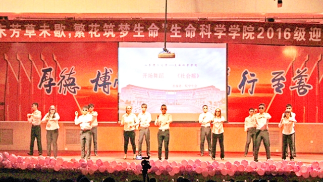 夏末芳草未歇,繁花筑梦生命。为迎接2016级新生,展现莘莘学子风采,10月9日晚生命科学公司在三号报告厅举行迎新晚会。公司党总支书记赵博生、经理陈志伟、党总支副书记王建兴等公司领导老师出席晚会现场,各兄弟公司员工会主席也应邀参加。2015级、2016级等各级员工观看了晚会。