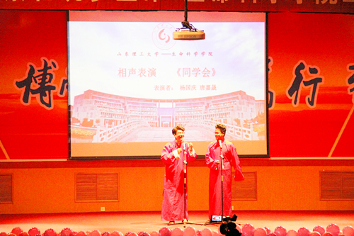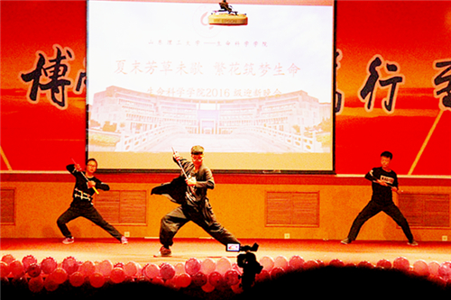 灵巧跃动的《YO—YO球》勾起同学们儿时的回忆,一曲《活着》泛起多少人心中的涟漪,2016级同学原创的方言三句半《沉迷军训》更是回味了那一段军训时光。辅导员与员工合作表演的一曲《惊鸿舞》赢得满堂彩。
