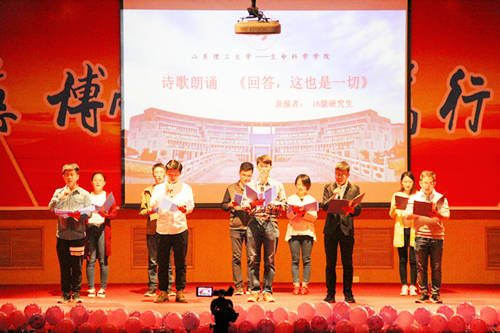 2016级的研究生们用一首声情并茂的诗朗诵《回答,这也是一切》,展现出新一届研究生青春焕发、朝气蓬勃的精神面貌,吉他弹唱《流年啊,你奈我何》、双节棍《醉凌云》舞蹈《NUMBER NINE》对口相声《同学会》创新班合唱《团结就是力量》等精彩节目一一亮相,表演者激情洋溢,台下新生青春活力满满。伴随教师大合唱《相信自己》的歌声,晚会最终圆满落幕。