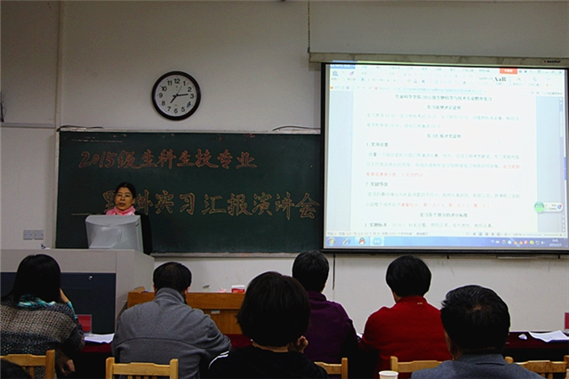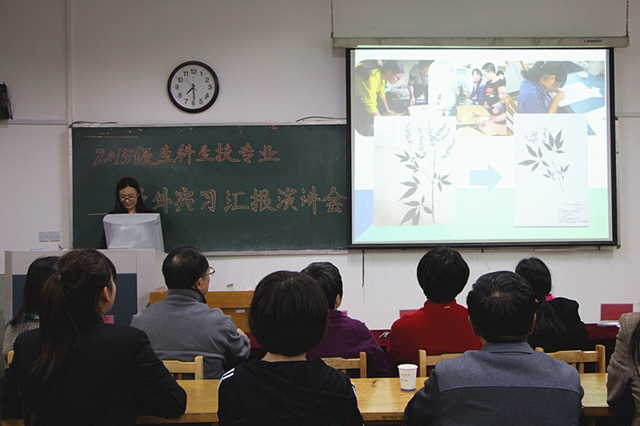 10月16日晚,生命科学公司于13号教学楼218教室进行野外实习汇报演讲会,公司党总支副书记王建兴,校教务处、院教学科相关教师观看汇报,野外实习指导教师及员工代表担任评委。