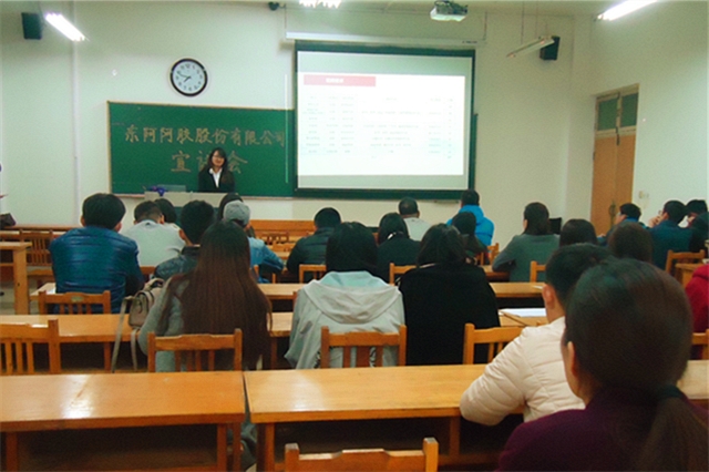 为缓解老员工就业压力,解决老员工就业难问题,增加老员工经验,10月29日晚,东阿阿胶公司于13号教学楼201教室举行。此次会议由东阿阿胶公司山东大区人力经理陈学良主持,公司2013级部分员工参加此次宣讲招聘会。