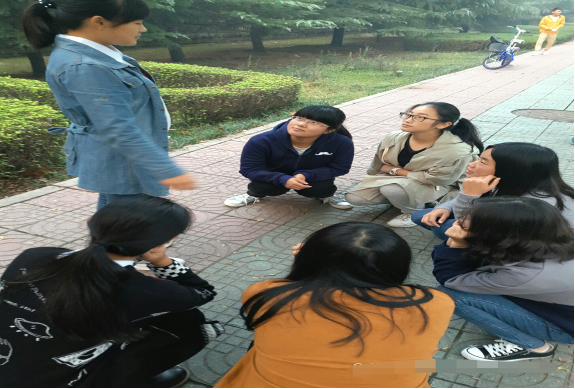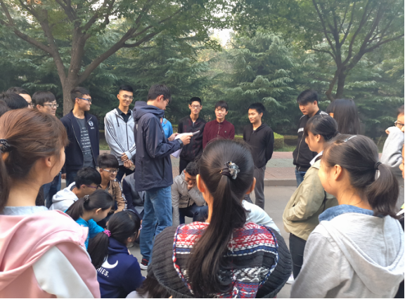 当天下午,团支书将同学们带到图书馆后方,团支书杨胜英简略开场白后,向支部同学介绍此次活动背景和目的,带领同学们回顾长征历史。