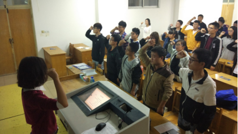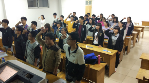 最后,在团支书的带领下,全体同学进行了长征宣誓,强烈表达了自己对红军革命前辈的深深敬意以及要用实际行动来发扬长征精神的坚定决心。