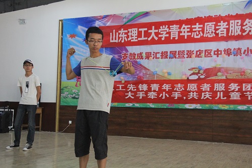 为了让孩子们过一个有趣而又难忘的六一儿童节,俱乐部成员在上场前对出场顺序及表演内容进行了多次的排练。主持人宣布六一联欢会开始之后,所有参与表演的社团都在一旁候场。悠悠球被安排在了第四个节目出场,等候期间,队员们也不放松,互相指点,力求配合到完美。当主持人宣布悠悠球表演开始的时候,队员们帅气出场,一出场便引来小朋友们好奇的目光,成功的调动起小朋友们的兴趣。大家按照彩排的内容,平稳发挥,依次出场表演一段。每个人表演的招式各不相同,但都精彩纷呈。熟练的动作和高难度的技巧展示赢得了小朋友们的一阵阵掌声,也激起了不少人对悠悠球的好奇心。在个人展示结束之后,三名队员同步表演,配合默契,让在场的人心生敬佩。此次悠悠球表演受到小朋友的欢迎,赢得掌声的同时也吸引了不少小朋友开始喜爱这项运动。