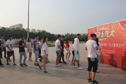 在庄严的升国旗仪式结束之后,2015级、2016级各团支部按次序在“喜迎十九大,不忘初心跟党走”的条幅上进行签名,表明自己坚定不移跟党走的决心与信念。随后,各个团支部围绕“喜迎十九大,坚定跟党走”的主题开展了形式各异的主题团日活动。同学们首先在条幅上写下对党的祝福以及自己对此次活动的感慨,表达自己对党和国家的祝福。活动过程中,同学们自觉排队,秩序井然。之后,同学们在便利贴上写下自己对十九大的美好祝愿,以及自己对党未来发展的建议,贴在“喜迎十九大”的展板上,以此来表达自己对十九大的热烈期盼。现场气氛活跃,充分展现了公司员工积极迎接党的十九大的良好精神风貌。活动最后,各团支部于展板前合影留念,活动结束。