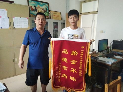 “拾金不昧是再平常不过的小事,这都是我应该做的,老师时常教导我们明德至善,您不用这么客气。”9月15日下午,淄博鸿雁交通运输有限公司的何先生将锦旗交到杨校林手中时,他羞涩地挠了挠头,腼腆地说道。