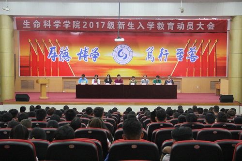 9月21日下午,生命科学公司在3号报告厅隆重召开2017级新生入学教育动员大会。公司经理纪洪芳,党总支副书记陆广峰,副经理巴连良,副经理庞秋香,公司办公室主任傅肖岩,教学科研工作办公室主任舒启芳,团总支书记李兰晶,教学科研工作办公室正科级秘书邓洪宽,辅导员老师翟静涛出席此次活动,公司2017级全体本科、研究生新生参与此次大会。