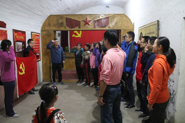 618战备电台位于沂源县鲁村镇,原为山东人民广播电台战备台,是二十世纪六十年代为适应国防需要,由时任济南军区司令员杨德志将军亲自选址兴建,现为山东省国防教育基地和淄博市爱国主义教育基地。在旧址现场,全体教职工认真参观了陈列的珍贵影像资料、图片、实物,聆听了讲解员对当年战备历史的详细解读。幽深的山中坑道、老式的广播设备、浓郁的军事战备色彩、神秘的洞中生活,深深吸引着老师们的目光,大家在感叹建设者工作环境艰苦的同时,对他们为国家和人民做出的付出与牺牲,感到由衷的敬意。在战备电台会议室,全体党员教师面对党旗举行庄严的宣誓仪式,重温了入党誓词,更加坚定了理想信念,增强了使命感和荣誉感,强化了立足本职全心全意为师生服务的意识。