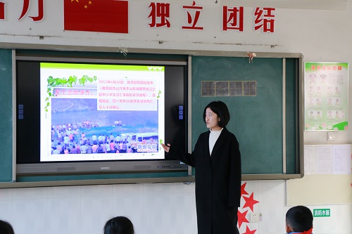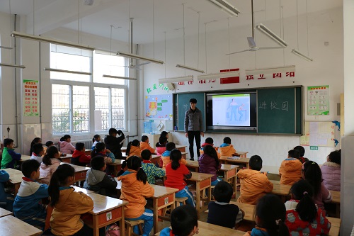 志愿者进入傅家镇中心小学,公司老师首先对志愿者的到来表示热情的欢迎。随后,志愿者们在老师的带领下,怀着激动和紧张的心情走进教室,小朋友们早已做好了认真听课的准备。