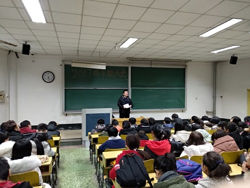 会议最后,翟静涛对本次期末考试大家优异成绩的取得表达了良好祝愿,并为所有同学送上了元旦祝福:希望大家能够紧握时间的尾巴,充实地度过2017年的最后几天,以优异的成绩及更加饱满的精神状态积极迎接2018年的到来。