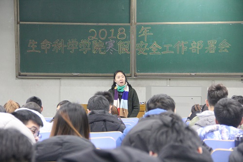 在叮嘱大家落实好上述要求的基础上,翟静涛提醒16、17级各宿舍舍长组织并安排好离校前的宿舍卫生清扫及用电检查,确保人走电断;假期兼职的同学,一定要注意部分兼职安全问题,预防被诈骗、误入传销组织等。他还建议同学们利用假期做好个人总结,明确努力方向,为新学期积蓄力量。蒋育忻叮嘱15级同学离校前务必带好个人贵重物品,确保个人财产安全;寒假申请留宿的同学一定要注意用电安全。针对学习成绩问题,她提醒同学们:“寒假期间注意查看成绩,不理想的同学利用假期好好努力。”李兰晶叮嘱14级找工作的同学带好简历等重要文件。关于下学期的安排,她提到一定要认真完成毕业设计,为老员工活画一个圆满的句号;下一学期的毕业照拍摄、毕业晚会等,她希望同学们能提前策划,为自己留下一份美好的回忆。