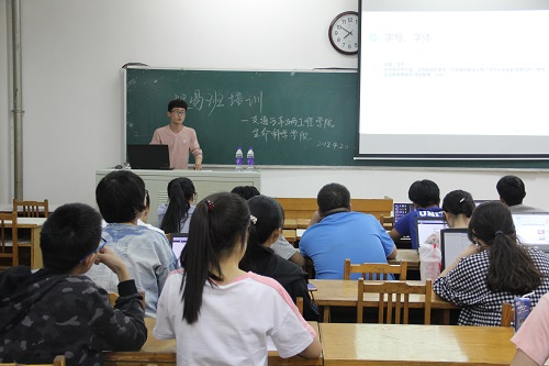 培训开始,校易班工作人员刘润梓为同学们讲解超级管理员的制作以及后台操作,从易班后台消息管理、机构群管理、任命管理、群主页管理等方面进行操作演示。此外,她还为同学们分析公司共建指数和公司活跃指数两项指标所包含的具体内容,以及两项指标的评定标准。校易班内容创作部杨振发向同学们讲解微社区内文章、话题等发布的格式要求及注意事项。关于易班轻应用搭建时视频、投票、报名、贺卡等内容操作方法也进行了详细讲解。最后,校易班综合事务部的人员对易班的考核评比及奖励制度进行强调,培训人员都仔细记录,认真学习。
