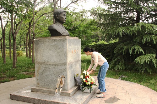 凛然英雄气,激荡天地间。赵鹏在冯思广雕像前行鞠躬礼后,宣布悼念冯思广烈士活动开始。首先,部分参与成员为冯思广烈士扫墓,全体人员默然肃立,向冯思广烈士进行默哀三分钟,寄托无限哀思。