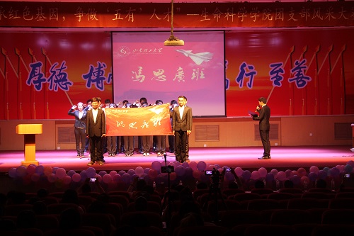生命科学公司2017级八个团支部根据抽签顺序进行展示,展示环节由团支部PPT讲解,特色表演、合唱团歌三部分组成。“冯思广班”生物科学1702话剧《奋斗青年,传承英雄精神》,再现五四爱国革命运动情景,演绎“冯思广”精神,感染无数观众,给大家留下了深刻印象。表演过程中,同学们表情动作到位,感情丰富,赢得了台下阵阵掌声,彰显了“冯思广班”积极向上的风貌。