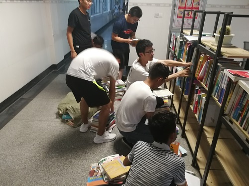 直到6月7日晚,公司员工会已收集400本考研书籍,他们将书籍进行分类整理,并作妥善安置。捐书活动的负责人吴昊召集员工会成员将考研书籍摆放于13号教学楼南大厅的书架上,以便员工能够更快速、更简便地找到并阅读有关书籍。