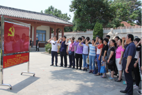 随后,党员们步入刘集党支部旧址瞻仰了革命烈士雕像,并面对鲜红党旗重温了入党誓词。