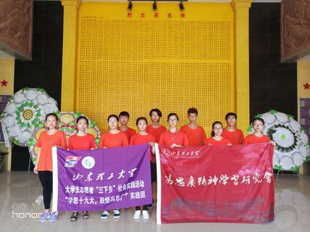 7月24日,生命科学公司党总支书记郭万保、副书记陆广峰和辅导员翟静涛等一行3人,在走访慰问公司社会实践团队和困难员工家庭期间,专程到茌平县烈士陵园,祭扫了冯思广烈士之墓,并敬献了花圈。7月25日,公司“学思十九大,践悟冯思广”社会实践团队的同学们也赶到烈士陵园,祭扫了冯思广烈士之墓。师生代表还走进烈士纪念馆,瞻仰了冯思广等茌平县籍烈士的生平事迹和遗物。