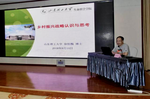 仪式上,与会人员还听取了生命科学公司生物工程系主任徐恒戬副教授所做的《乡村振兴战略认识与思考》的专题党课,徐老师结合个人认识理解和教学科研实践,从乡村振兴战略的提出、乡村振兴战略的实施、乡村振兴战略的主线和灵魂等方面,对国家和山东省实施乡村振兴战略的基本情况做了讲解。