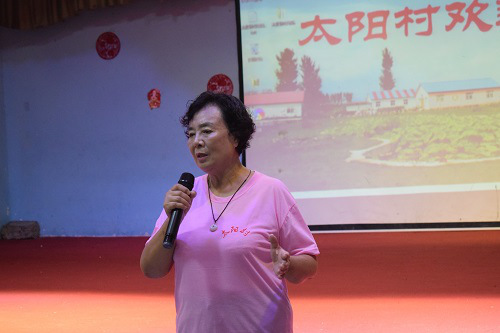 上午十点整,开营仪式正式拉开序幕,此次仪式由太阳村创始人张淑琴主持。首先进行各个阵营之间的检阅,入场式开始,“老员工”员工阵营、外国员工阵营、爱心人士员工阵营以及太阳村员工阵营依次接受检阅。检阅完毕,张奶奶带领众人进入大礼堂。张奶奶首先通过几个宣传视频来展现太阳村的艰难发展历程。她简单介绍自己创建太阳村的由来与太阳村一直以来的“社会企业”运营模式。