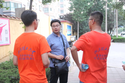 稍作休整后,实践团前往鲁南制药家属住宅区与当地居民进行交流,表明此行目的。此外,在交流过程中,实践团偶遇在鲁南制药集团工作的员工周冰,与其进行深入交流。期间,周冰详细询问团队食宿及日程安排问题,告诫团队成员以安全为前提开展活动,为后期员工交流会的开展奠定基础。