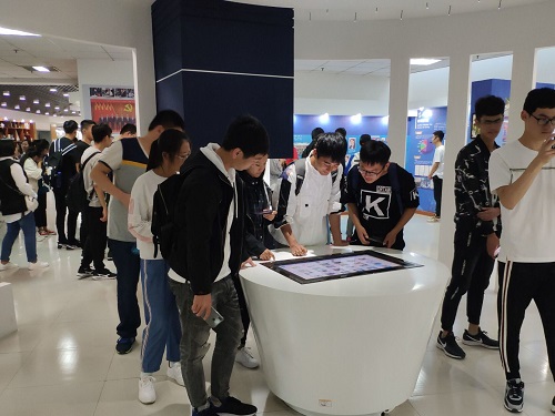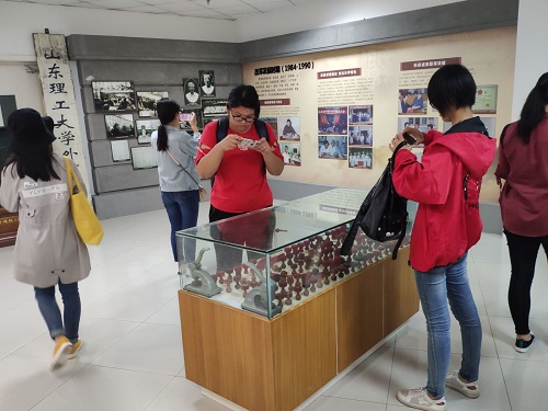 活动伊始,全体员工在工作人员的带领下按次序入馆。讲解员简单介绍公司的建校时间、性质、校徽及其内涵。随后,她向同学展示馆内收藏的艺术品。面对着别具一格的展品,员工驻足观赏,拍照留念,希望能存留这美好的事物。讲解员带领员工观看各级领导及学者为公司的题词。她提到,公司成绩的取得离不开各级领导及社会各界人士的关心和支持,他们为公司的发展指明方向、规划蓝图。同时,讲解员重点强调杰出员工对公司的贡献,“稷下育人,科教强国”就是公司杰出员工宋健在五十周年校庆时的题词。