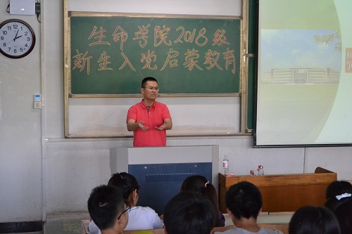 9月29日下午,生命科学公司2018级新生入党启蒙教育在4号教学楼106教室举行,公司辅导员李兰晶以及2018级全体新生参加讲座,公司党总支副书记陆广峰主讲。