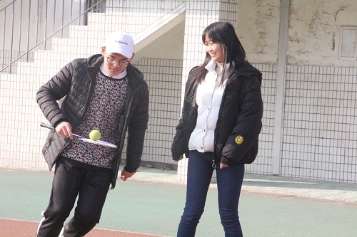 此次活动分为十一支队伍,共四个项目,分别为“托球接力”“二人三足”“齐心协力”以及“你想吃乒乓球吗”。活动伊始,参赛队伍依次进行展示,分别介绍团队的队长、队名、队歌以及口号。首先进行的是“托球接力”活动,即用羽毛球拍托着网球接力,活动激烈刺激,每个人都专心关注比赛的队员并为其加油。接下来进行“二人三足”活动,将小组成员的脚两两绑在一起,相互扶持前进而行。充分体现出小组成员之间相互帮助、团结协作的良好运动精神。随后进行“齐心协力”活动,两名队员互相配合,利用背靠背夹住排球,同心协力,步调一致。比赛中,大家一边要注意脚下的步调一致,一边还要留神背后的排球不要溜出来,有时还会关注竞争对手的情况,每组选手都高度紧张。最后,此次趣味运动会在“你想吃乒乓球吗”活动结束后落下帷幕。比赛过程中,各队伍在工作人员的安排下有序进行各个项目,队员之间相互配合、团队意识十足、比赛氛围激烈。