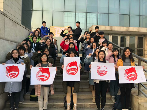 活动伊始,团支书宋奕菲为每位团员发放团徽,每位团支部成员庄严而慎重的佩戴在左胸前。班长张青山进行发言,他指出团徽是庄严而神圣的,团支部成员应严肃认真的进行绘画。此次活动,团支部共分为5个团队,每个团队集众人之力绘画一幅团徽,并由团队内一名团员讲解团徽知识,深刻了解团徽内涵,至此,团支部成员进一步了解到团的知识。随后,团支部成员在图书馆前庄严宣誓“我志愿加入中国共青团”,大家高举右手,紧握成拳,重温入团誓言,回忆入团初心。在图书馆前,团员们争先与团徽合影,向青春致敬,将青春誓言留在一张张合影上,将爱国情怀洒满整个校园。