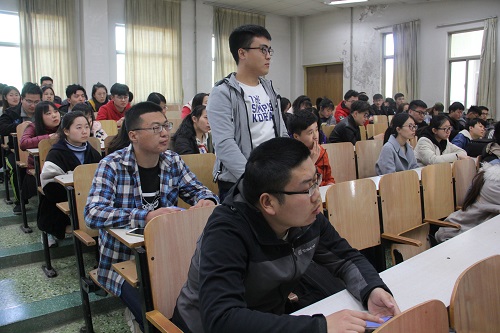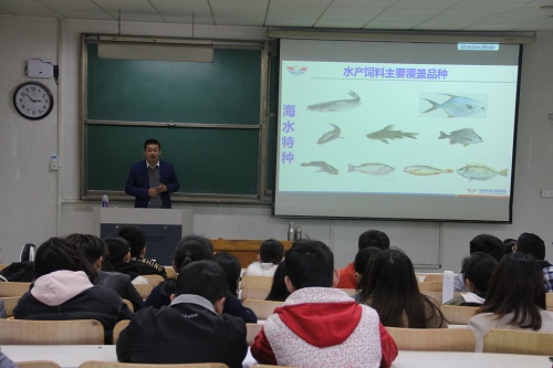 会议伊始,张晓阳从自己的学习经历和工作经历两个方面引出有关就业指导的主要内容。他结合自身学习经历介绍生物专业就业方向,引导员工看清就业形势,树立正确就业态度。同时结合其工作经历进行精彩的职业分享。其中重点介绍其所在的广东粤海饲料集团专业的专家委员会、强大的研发平台和研发团队和先进的研发基地。另外,他分析水产行业发展现况并介绍就业前景,同时诚挚的邀请感兴趣、有梦想的同学加入广东粤海饲料集团。接下来,张晓阳通过现场互动的方式,为同学们答疑解惑。最后,他热情的邀请学弟学妹们到广东粤海饲料集团参观、学习、工作,并留下个人联系方式表示随时愿意为同学们提供就业方面的帮助。