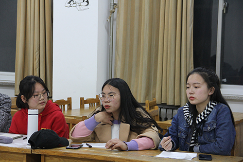此次活动主要针对班级里近期的学习状况进行讨论。会议伊始,党丽峰及学习部的成员向新成员进行简要自我介绍,并说明此次活动的主要包含讨论各班级存在的学习问题,商讨建设良好的学习风尚的方法两方面的内容另外,她积极鼓励各个班级的学委踊跃发言,真实准确反映自己所在班级学习情况,积极提出问题并集体解决问题。